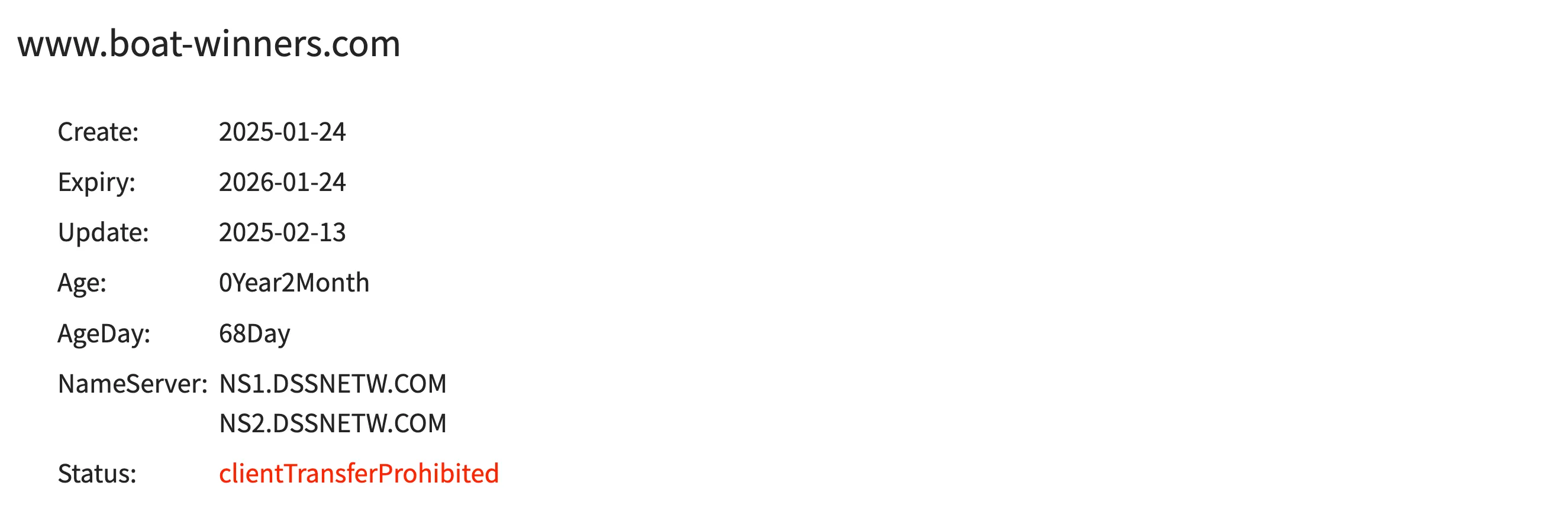 【ボート ウィナーズ(BOAT WINNERS)】のドメインも調べてみたところ、ドメイン取得は今年の1月。