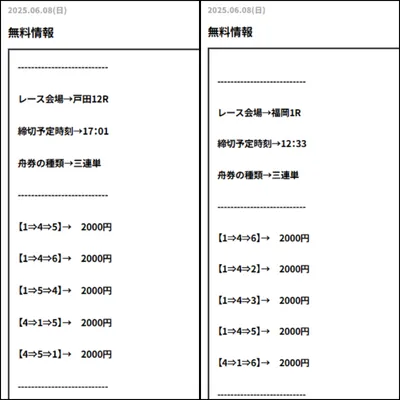 デタラメな買い目をユーザーに送りつけて、当たればラッキーくらいの感覚なんだと思います。