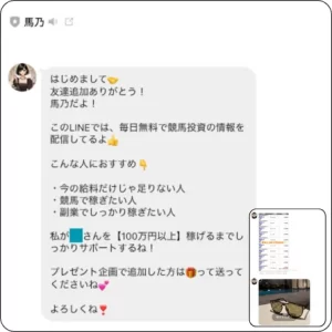 【馬乃🐎競馬だけで月4000万✨】に影響力があるのかどうかはLINEを追加すればわかってくることだと思うので、続けて公式LINEに友だち追加していきましょう。