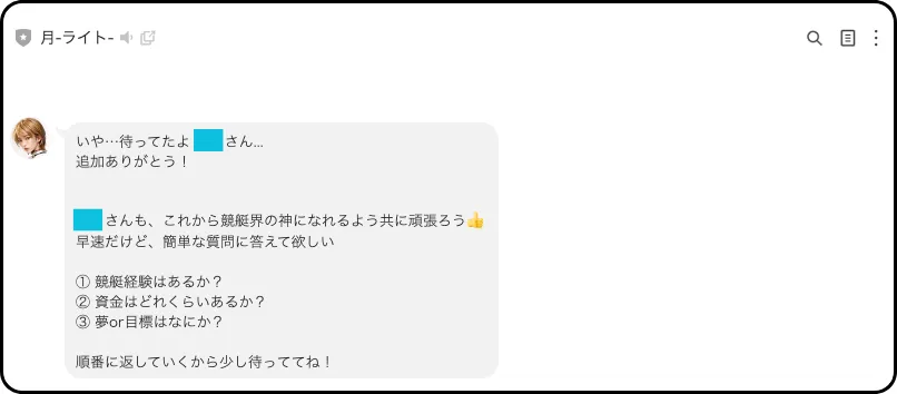 初めに送られてくる文章は少し淡白な内容でしたが、他の競艇インフルエンサーとほぼ同じ内容でした。