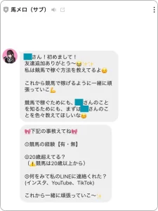 【馬メロ】に影響力があるのかどうかはLINEを追加すればわかってくることだと思うので、続けて公式LINEに友だち追加していきましょう。