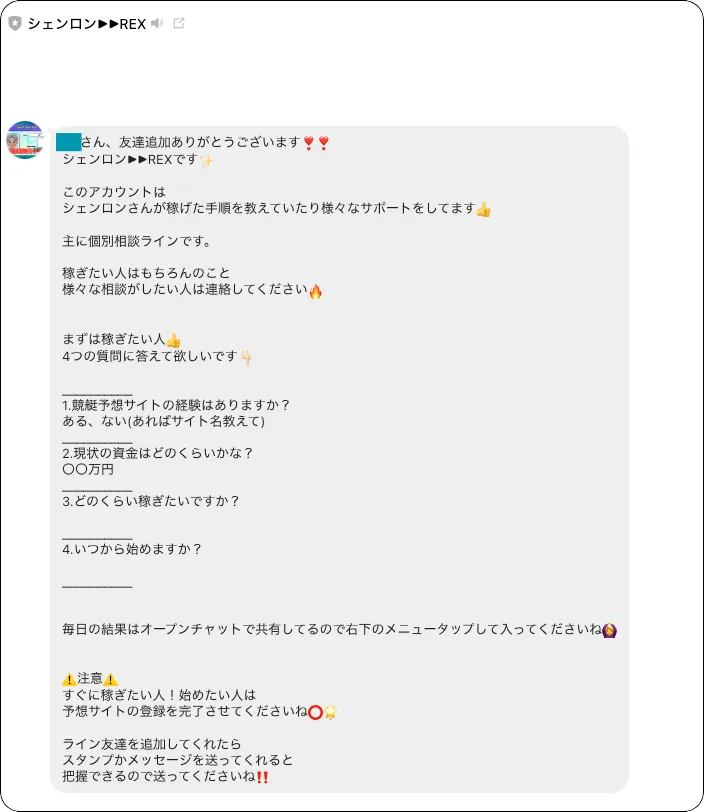 他にもあげられる点はいくつもありますが、総じて【REX(シェンロン)】は極めて悪質性の高い競艇インフルエンサーであると判断できるでしょう。