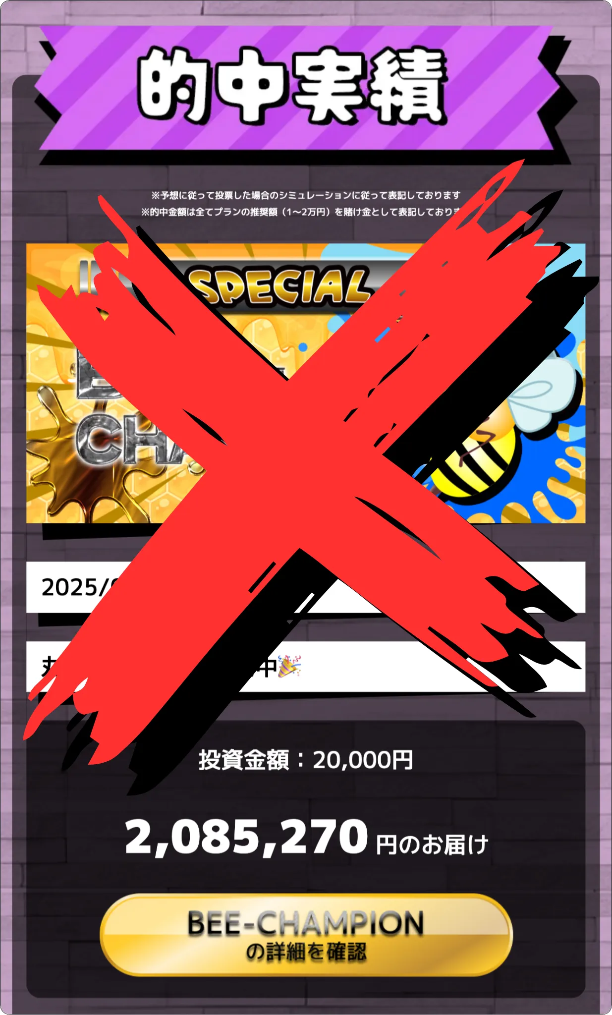 ホームページに掲載してる最新の的中実績は、会員登録を煽るための捏造情報。