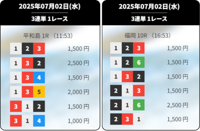 | 7/2 | 平和島1R 福岡10R |