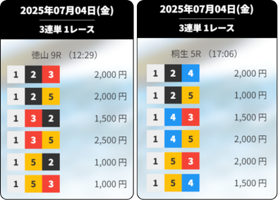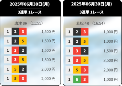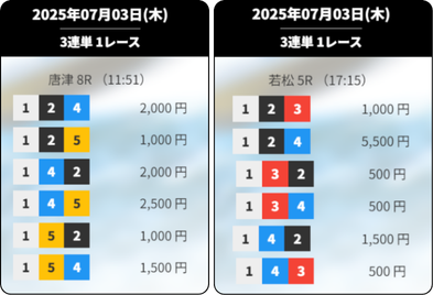 買い目 | 結果 | 的中額 |