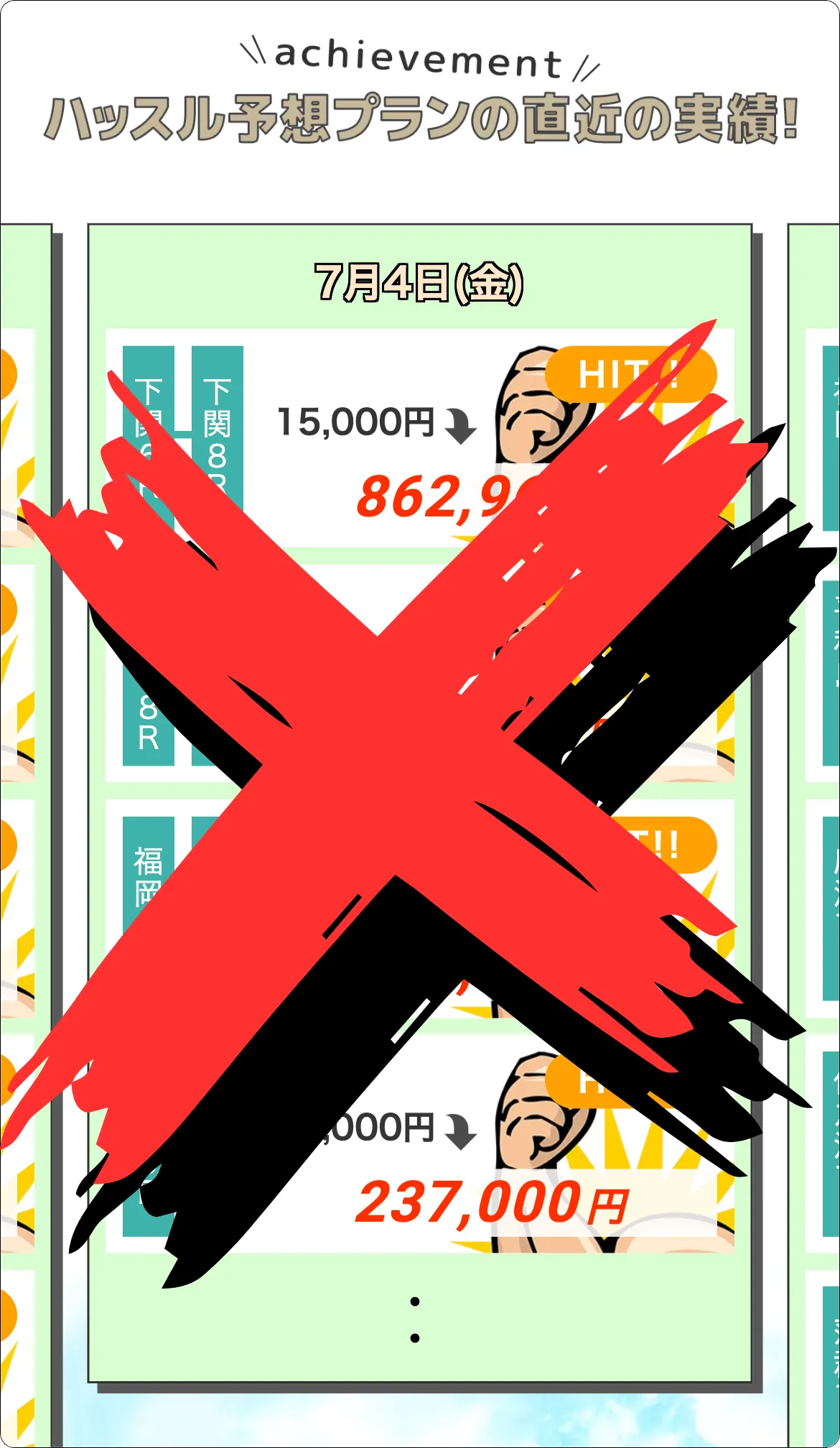 最新の的中実績も、恐らく会員登録を煽るための捏造情報。