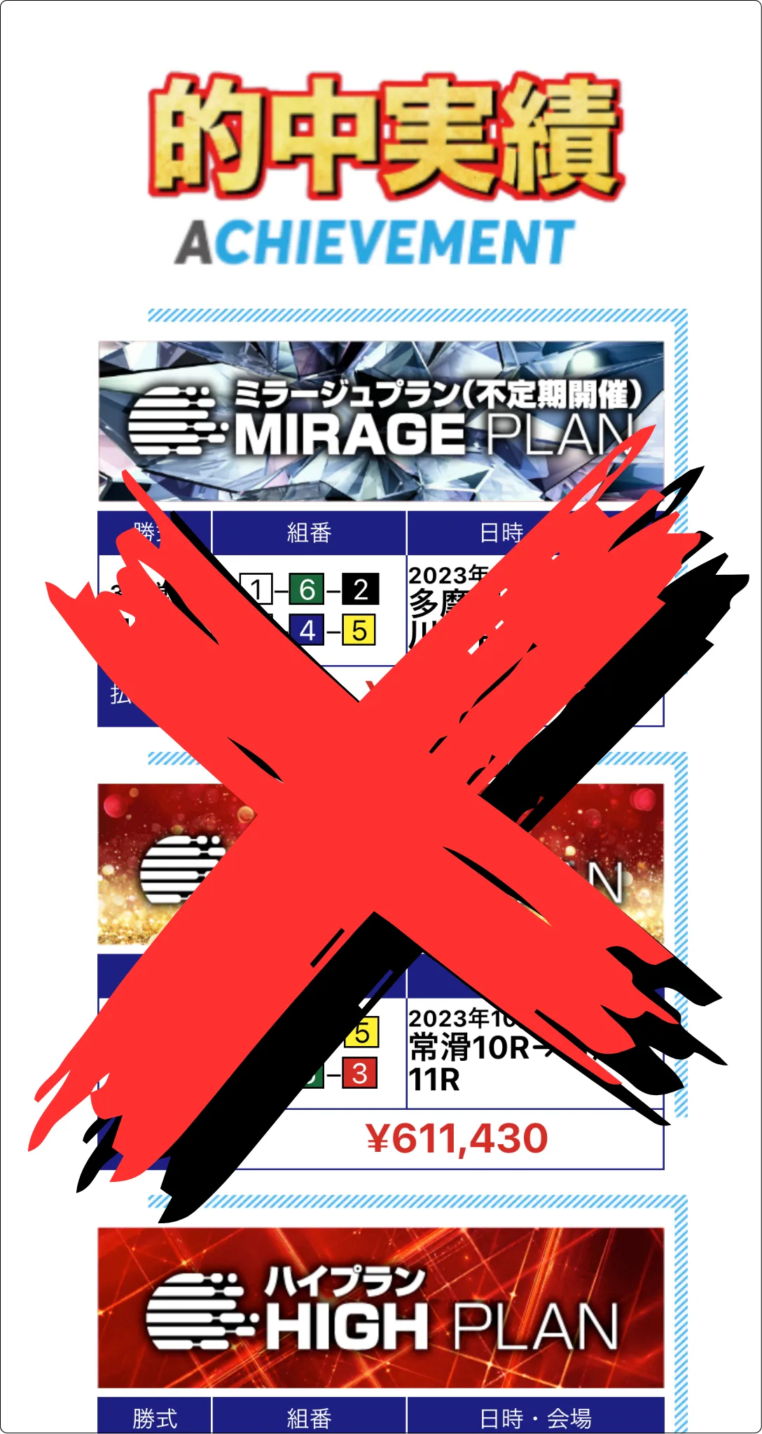 最新の的中実績も、恐らく会員登録を煽るための捏造情報。