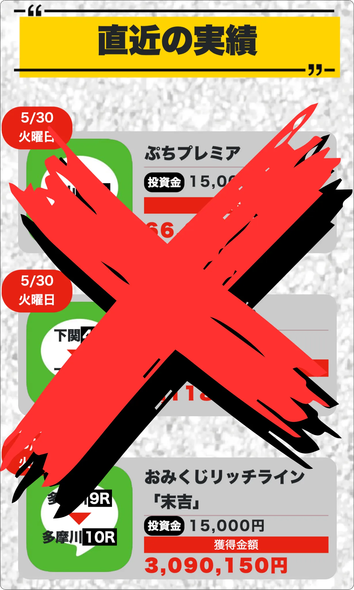 最新の的中実績も、恐らく会員登録を煽るための捏造情報。