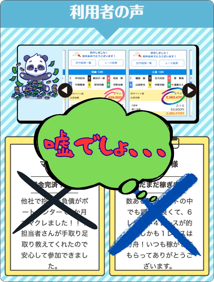 稼げる,高配当,詐欺,詐欺サイト,騙される,的中,高額的中,投資,競艇投資,悪質,悪徳,凶悪,最悪