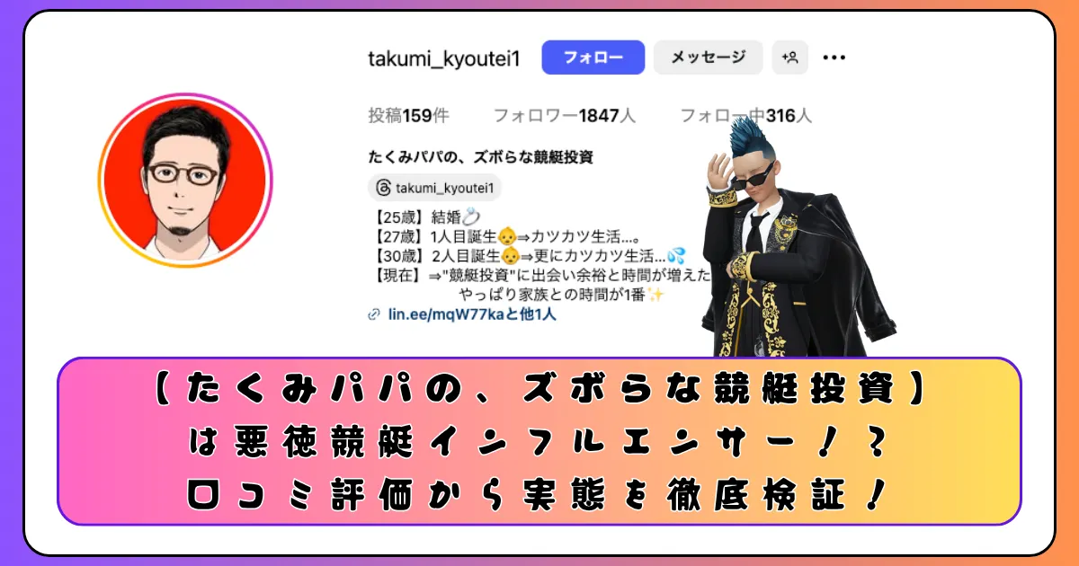 【たくみパパの、ズボらな競艇投資】は詐欺パパ!?悪徳サイトで金銭騙し取り!?