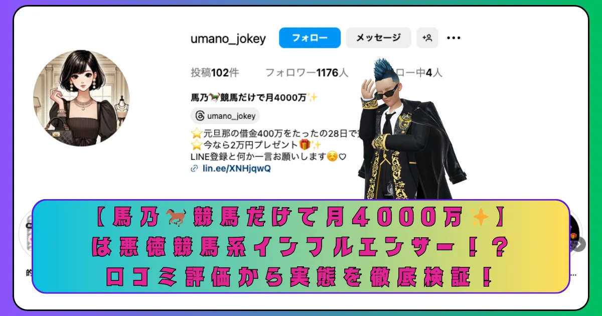 【馬乃🐎競馬だけで月4000万✨】は詐欺師?競馬系悪徳インフルエンサー検証!